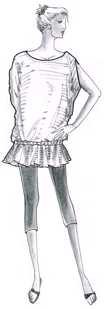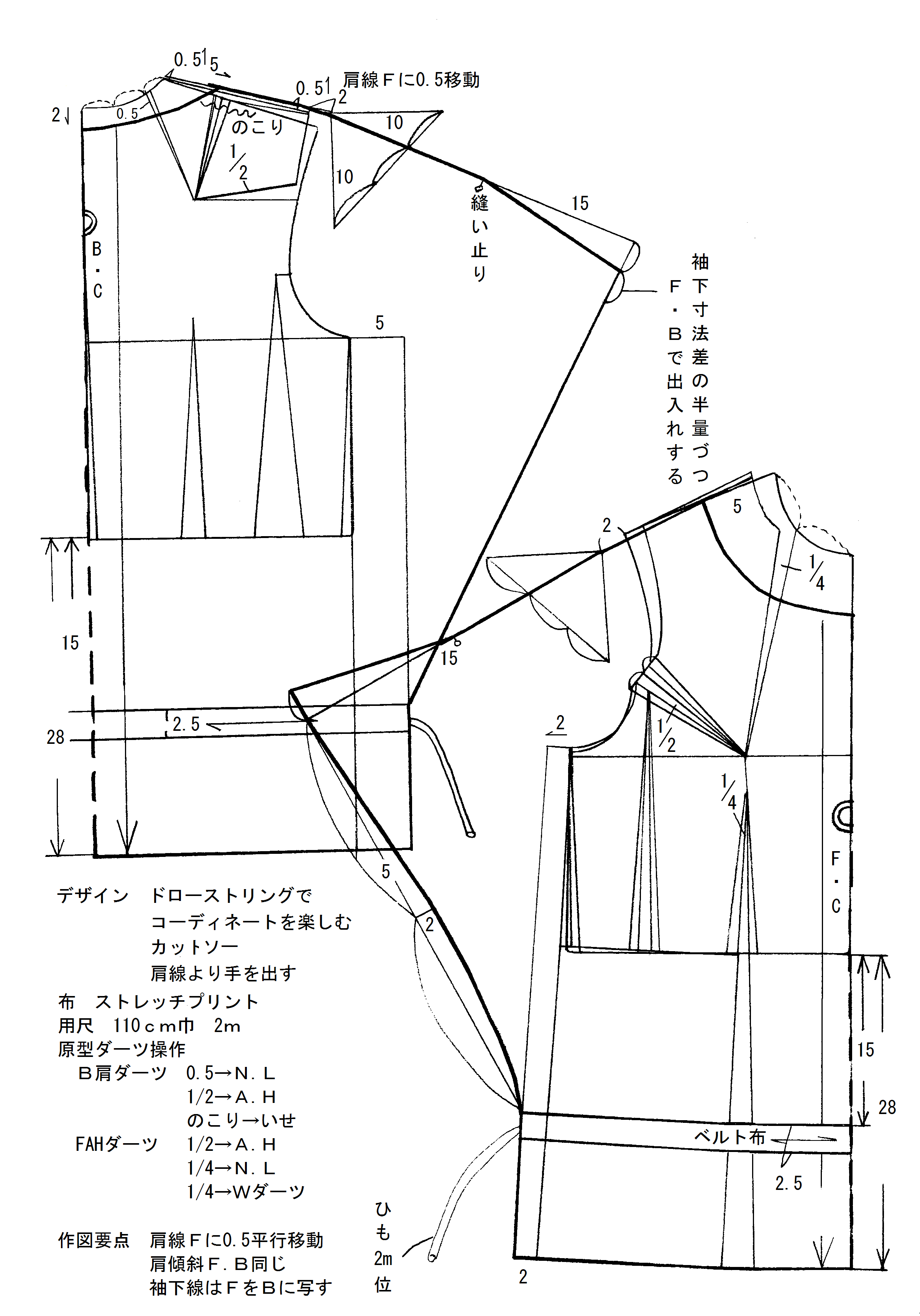 ドローストリングでコーディネートを楽しむカットソー 肩線より手を出す